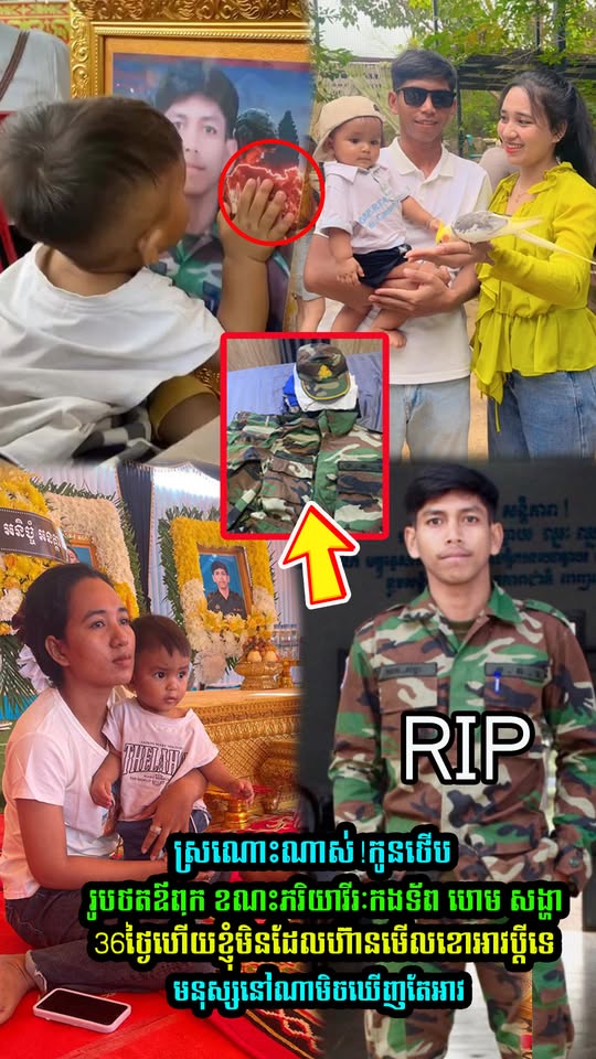កូនព្រា-ត់ឪពុក ប្រពន្ធព្រា–ត់ប្តី 🥹 ភរិយាវីរៈកងទ័ព ហេម សង្ហា បង្ហោះសារទាំងអួ//លណែនដើមកបែបនេះថា៖36ថ្ងៃហេីយខ្ញុំមិនដែលហ៊ា-នមេីលខោអាវប្ដីទេ មនុស្សនៅណាមិចឃេីញតែអាវ