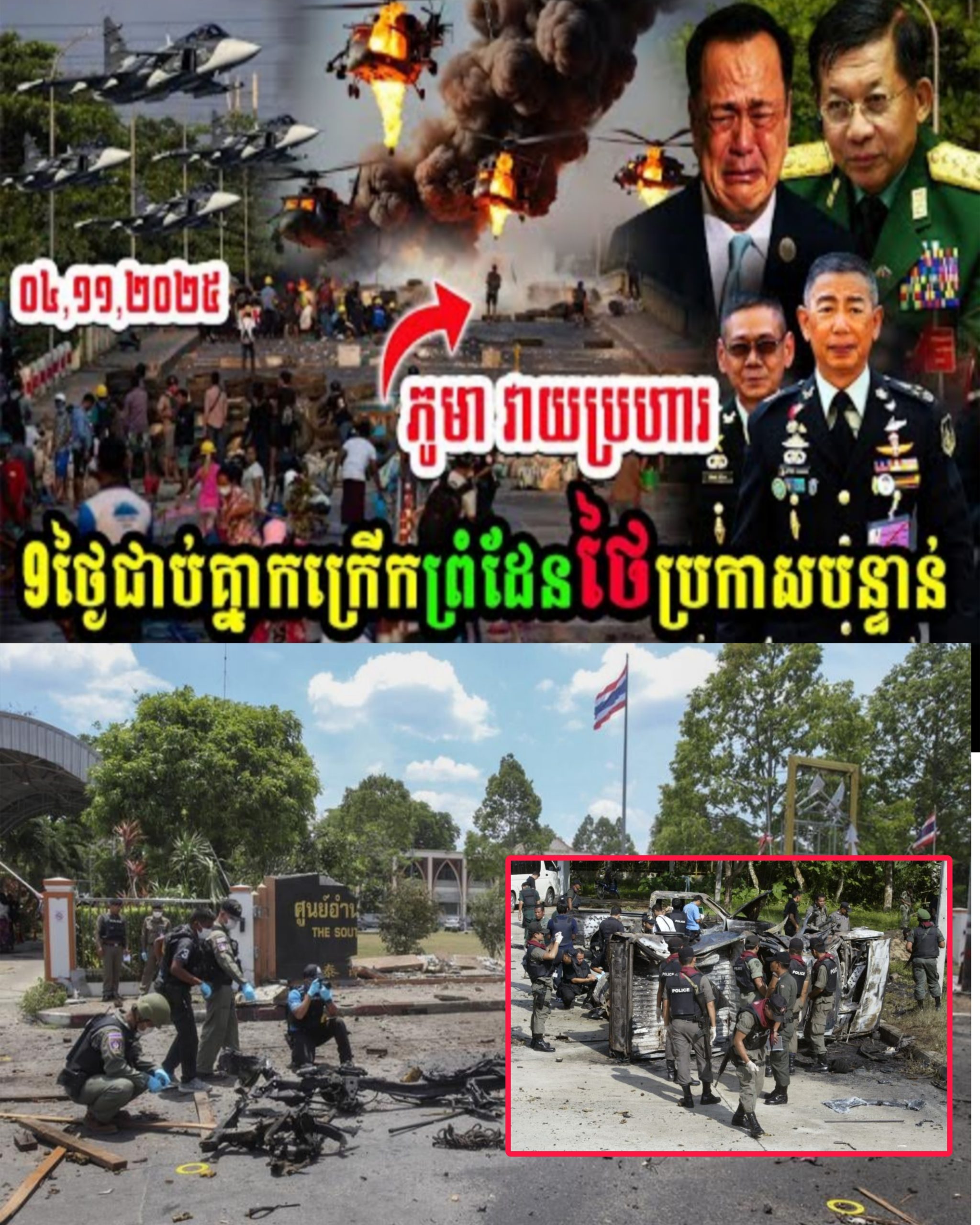 Newsភូមា វាយប្រហារ9ថ្ងៃជាប់គ្នាកក្រើកព្រំដែនថៃប្រកាសបន្ទាន់.. November 4, 2025 - by khmerhot - Leave a Comment ភូមា វាយប្រហារ9ថ្ងៃជាប់គ្នាកក្រើកព្រំដែនថៃប្រកាសបន្ទាន់.. VIDEO