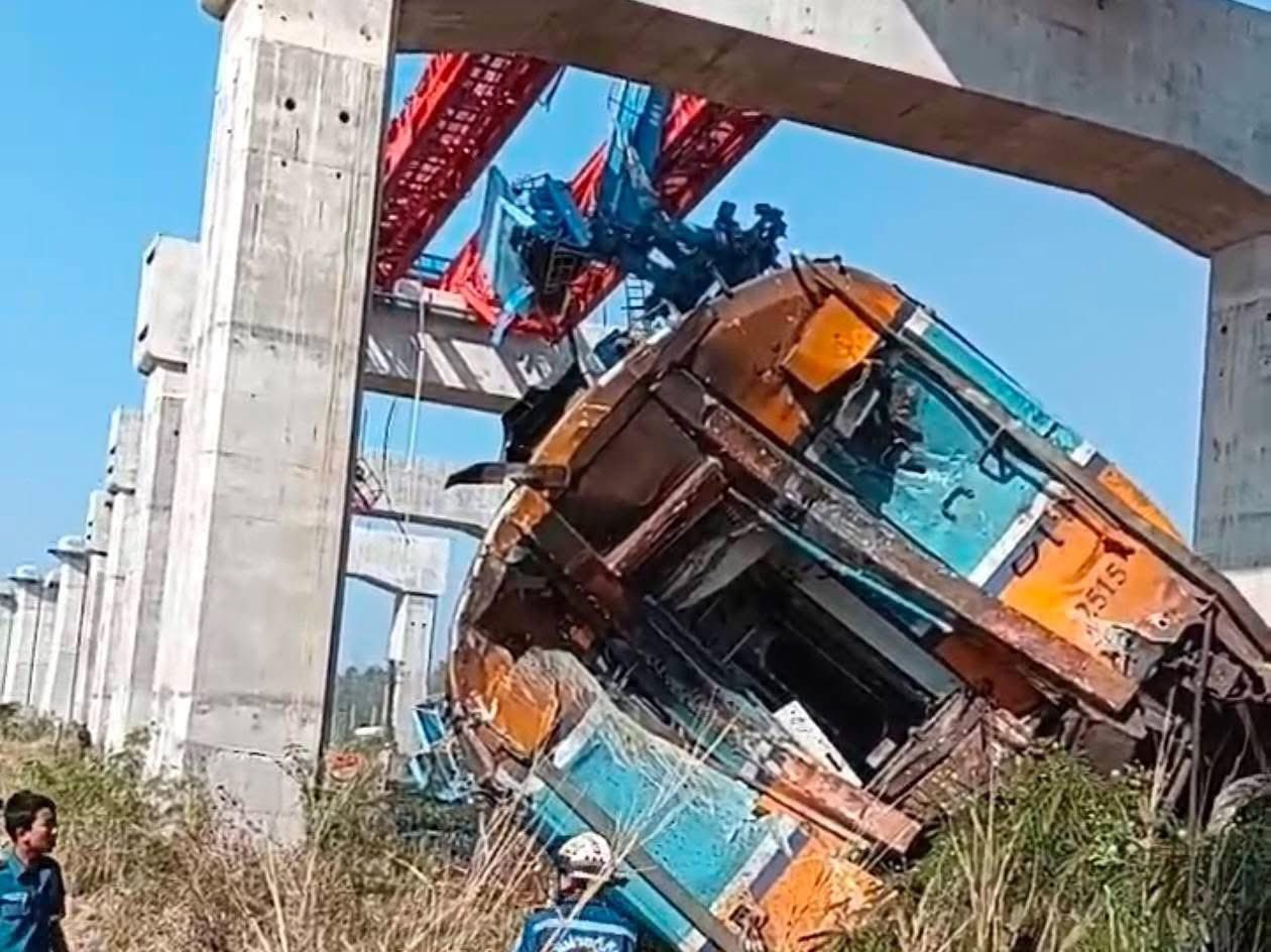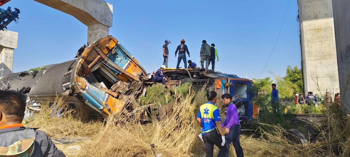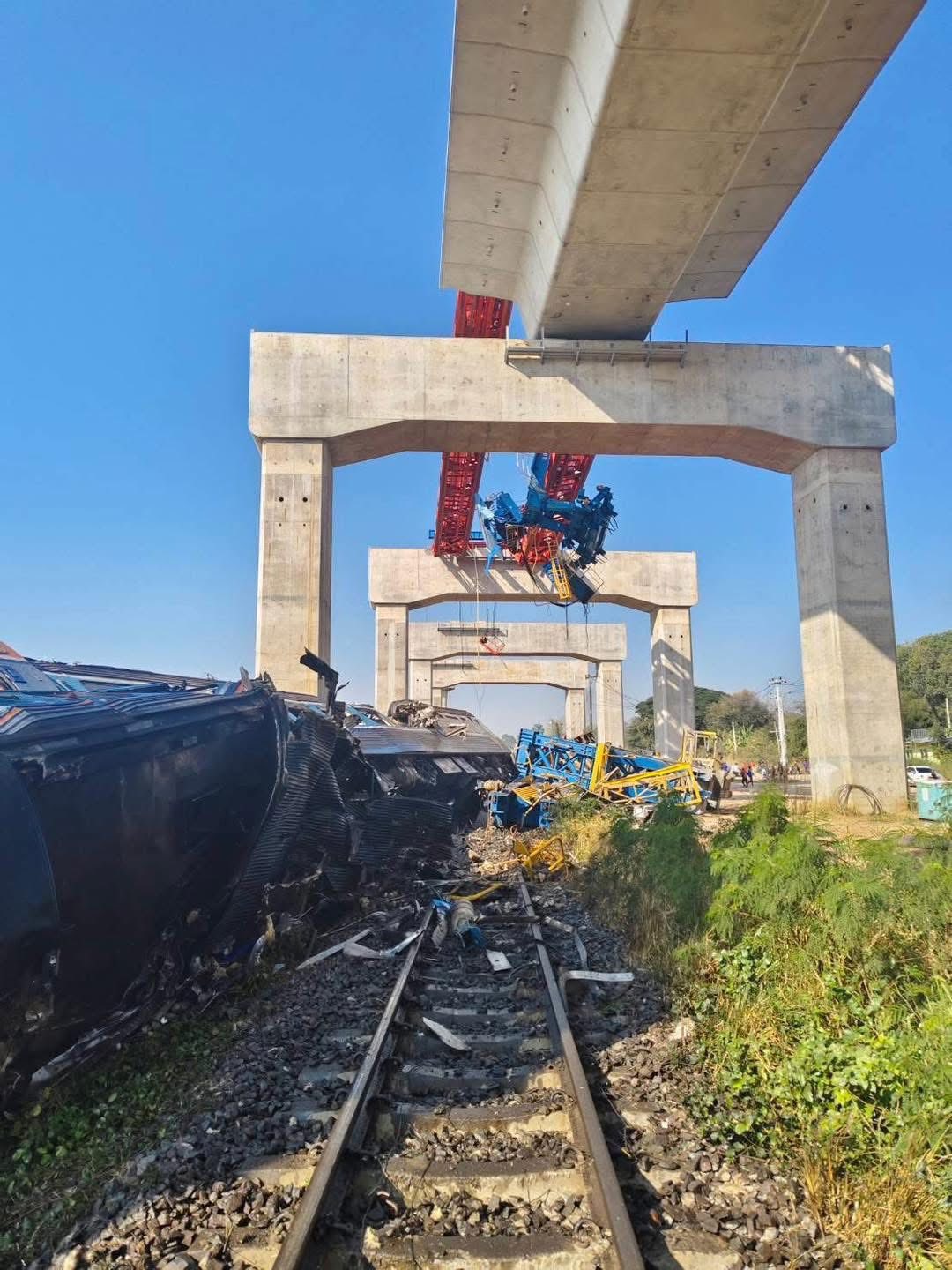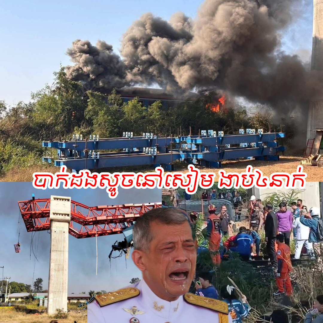 ខេត្តនគររាជសីមា វេលាម៉ោង៩:០៥ព្រឹកថ្ងៃនេះ (ថ្ងៃទី ១៤ ខែមករា ឆ្នាំ២០២៦) ស្ទូចលើកស្ពានផ្លូវដែកល្បឿនលឿនបានបាក់ធ្លាក់ ទៅលើរថភ្លើងដឹកអ្នកដំណើរពីទីក្រុងបាងកកទៅ ខេត្តឧប៊ុនរាជធានី ខណៈពេលដែលកំពុងធ្វើដំណើរ។ រថភ្លើងបានធ្លាក់ផ្លូវ និងឆេះ។